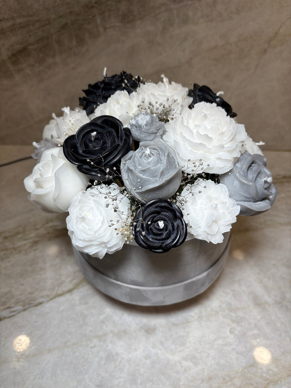 Frakt inom hela Sverige eller upphämtning på plats. Stilren handgjord vaxbukett i svart,...