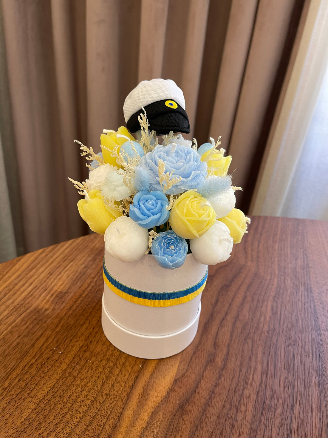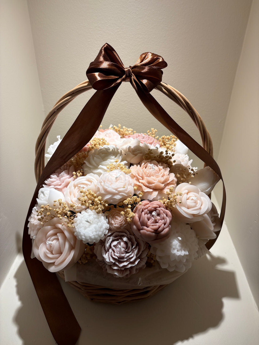 Ljusbukett gjord av stearin- och sojavax. Storlek :H ca31cm, B ca 20cm Tänd ej bukett...