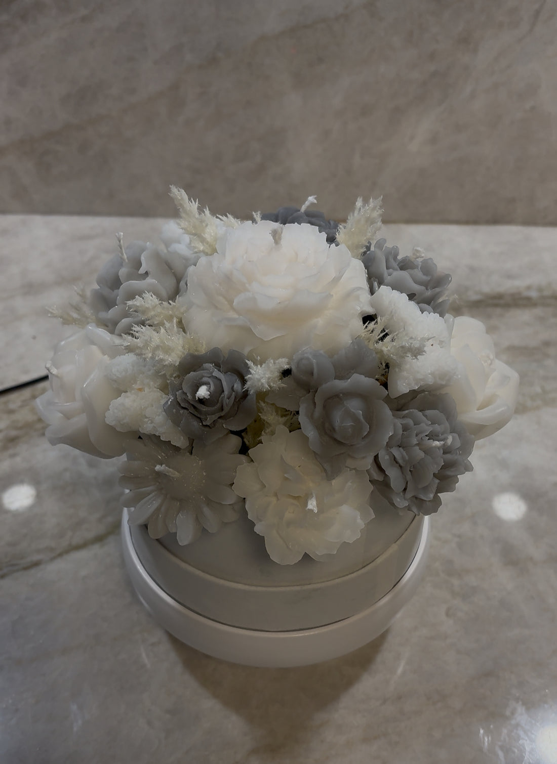 Ljusbukett gjord av stearin- och sojavax. Storlek :H ca 25cm, B ca 16cm Tänd ej...