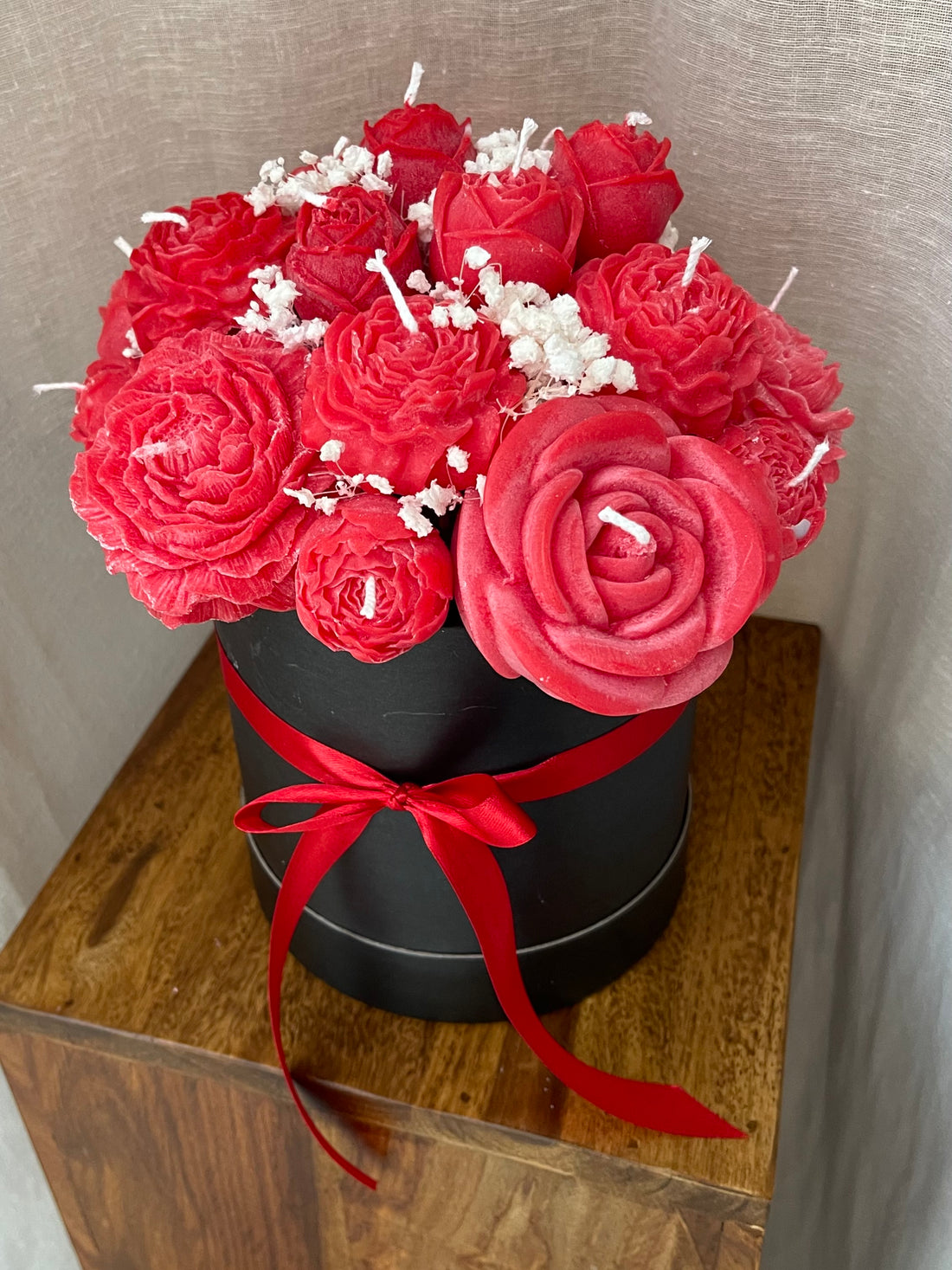 Bukett gjord av vax i lyxig velvet box. Perfekt att ge bort i julklapp! Höjd...
