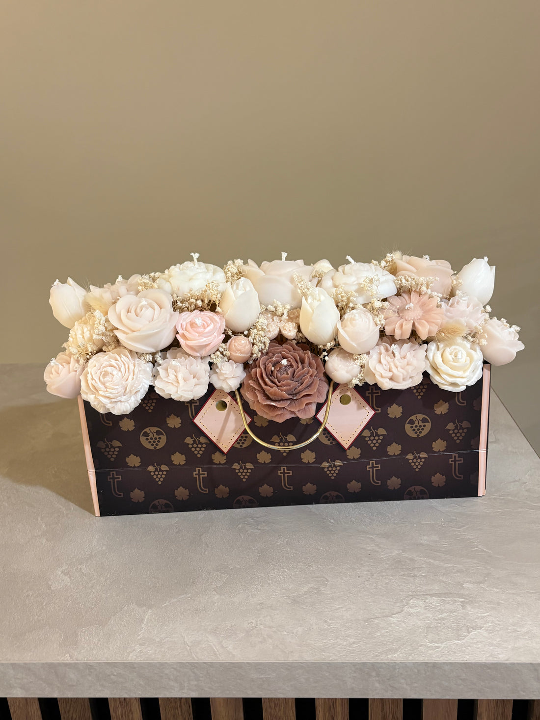 Velvet boxbukett beige