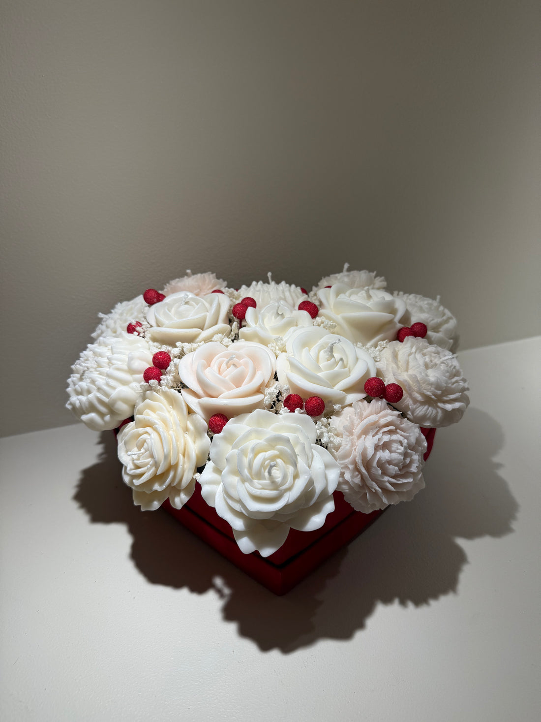 Leverans är 5-10 dagar Vacker hjärtformad bukett gjord av vax i lyxyg velvetbox. H 13...
