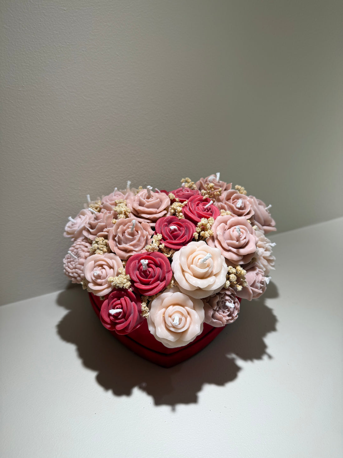 Leverans är 5-10 dagar Hjärtformad bukett i lyxig röd velvet box.