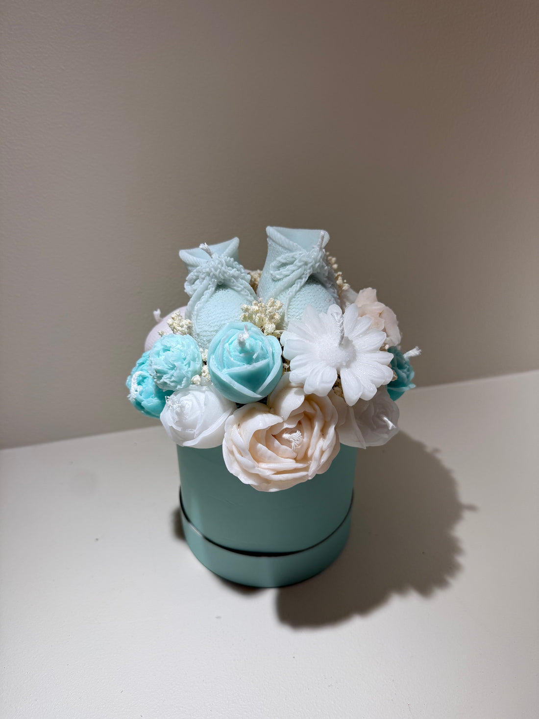 Leverans är 5-10 dagar Baby bukett med två små skor, perfekt som gåva för dop....