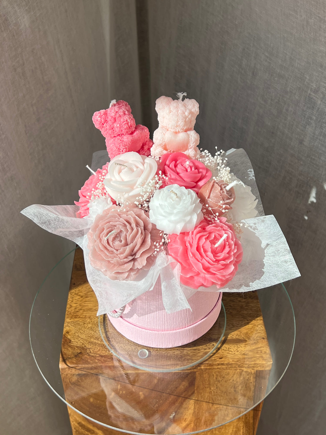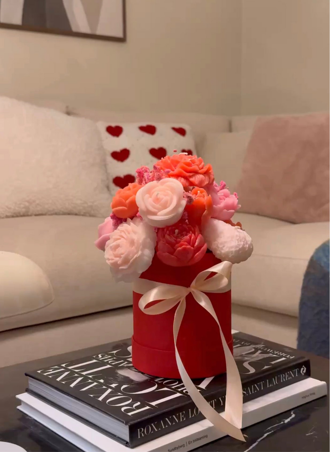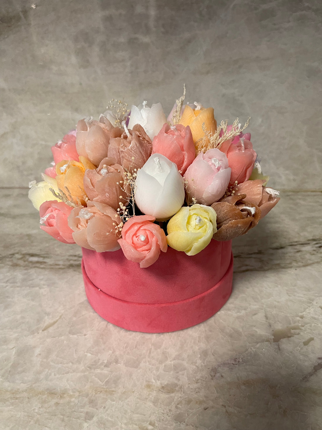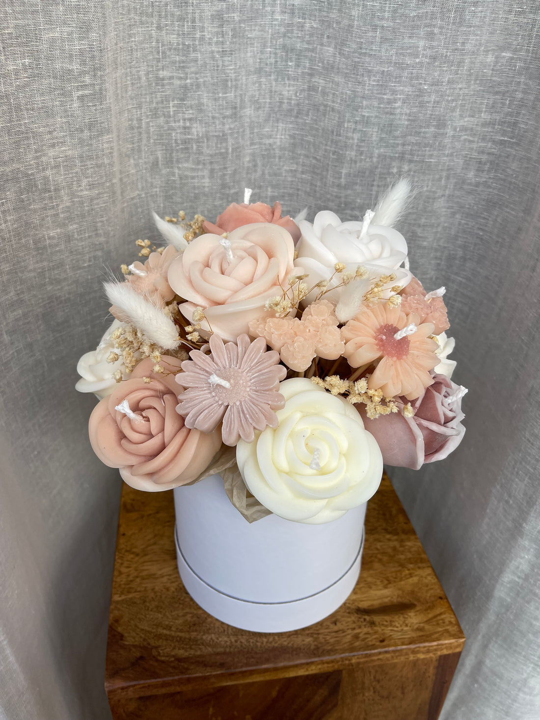 En av våra större buketter, tillverkad i vax och i en lyxig benvit velvetbox. Med...