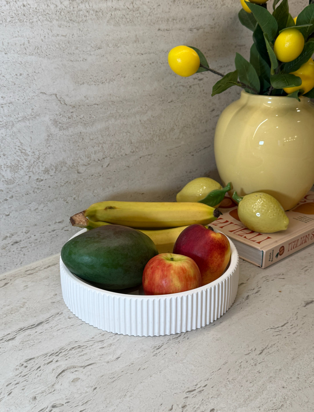 Frakt inom hela Sverige eller upphämtning på plats Vit randig skål , perfekt som fruktskål eller...