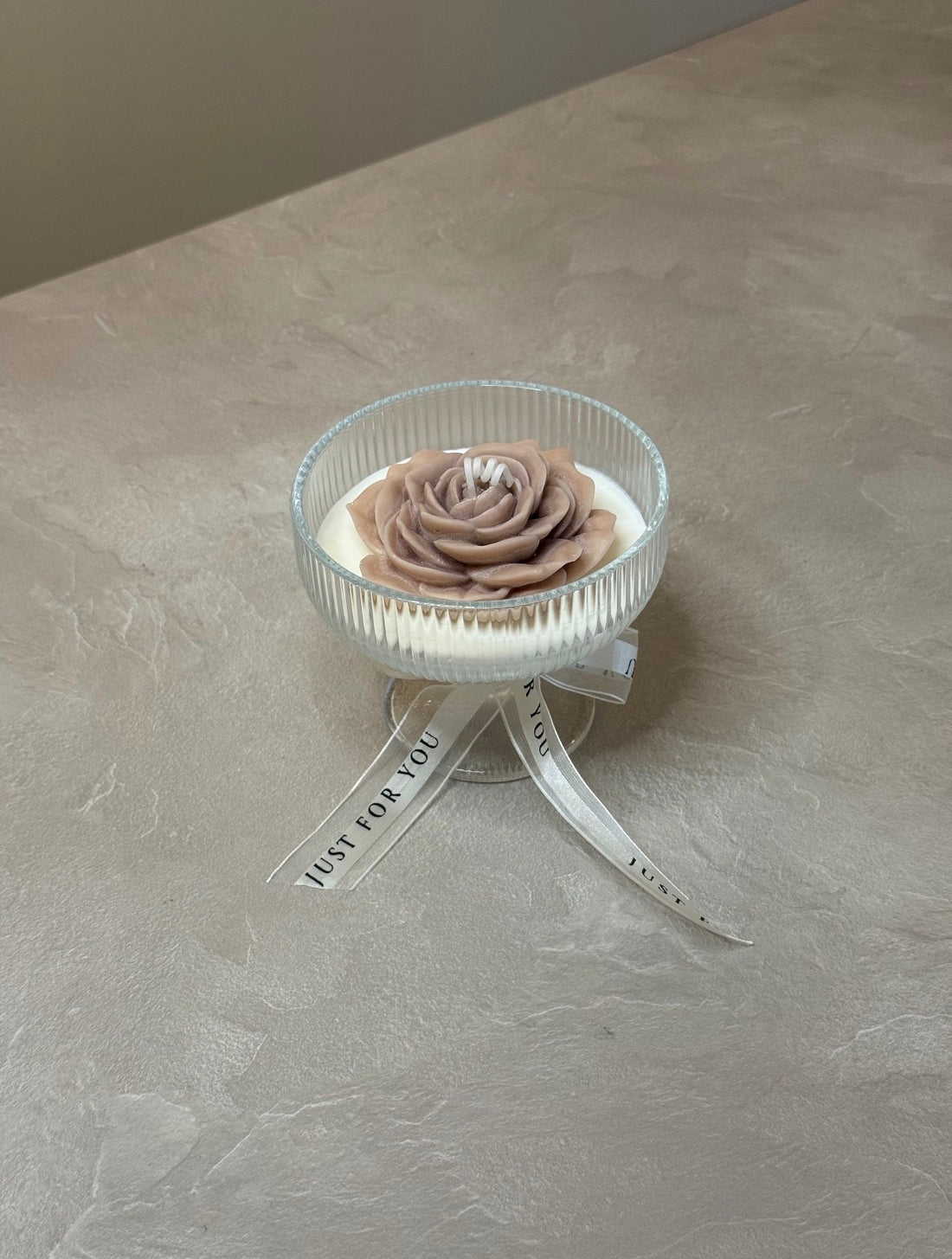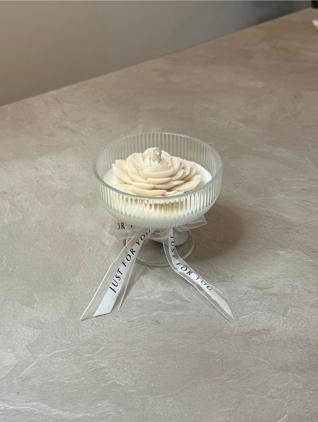 Ett elegant handgjort doftljus i clear glas med en vacker ros formad för hand i...