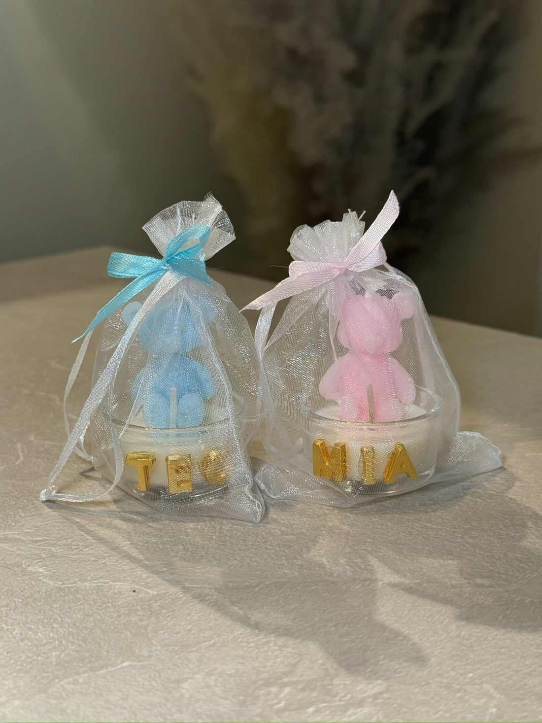 Ett sött handgjort ljus i glas, dekorerat med en liten nalle och levererat i en...
