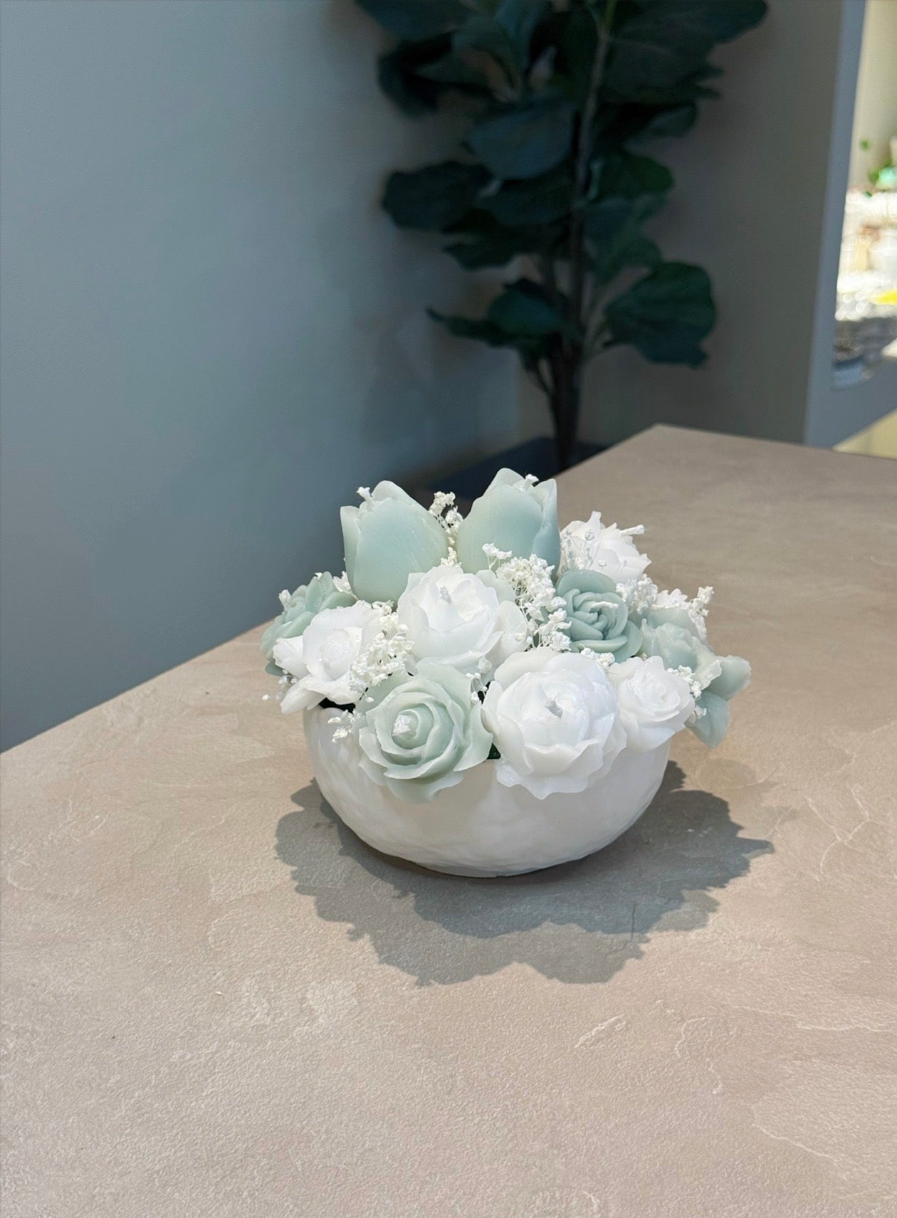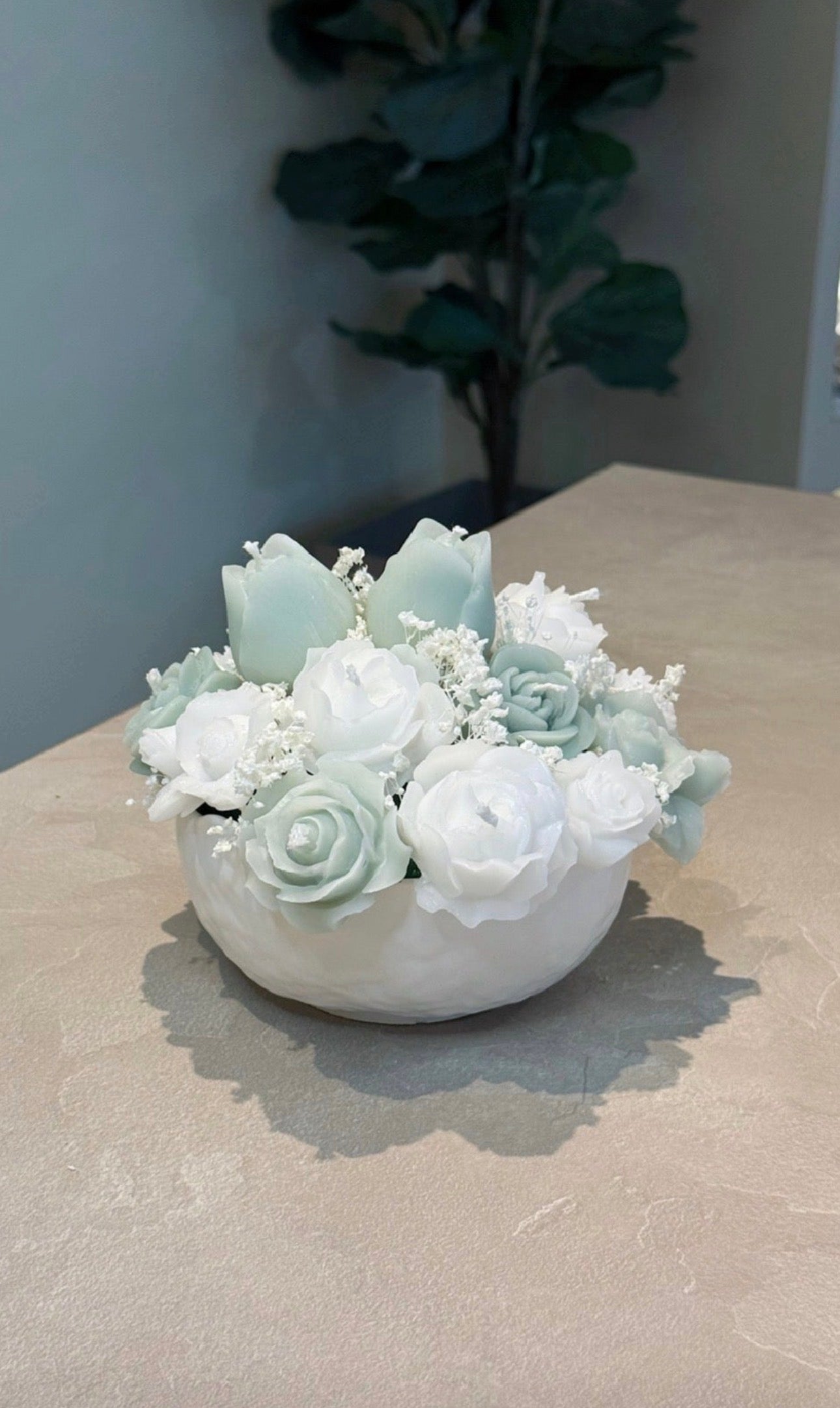 En liten bukett av handgjorda vaxblommor – där varje kronblad bär en viskning av elegans och värme. ✨🕯️
