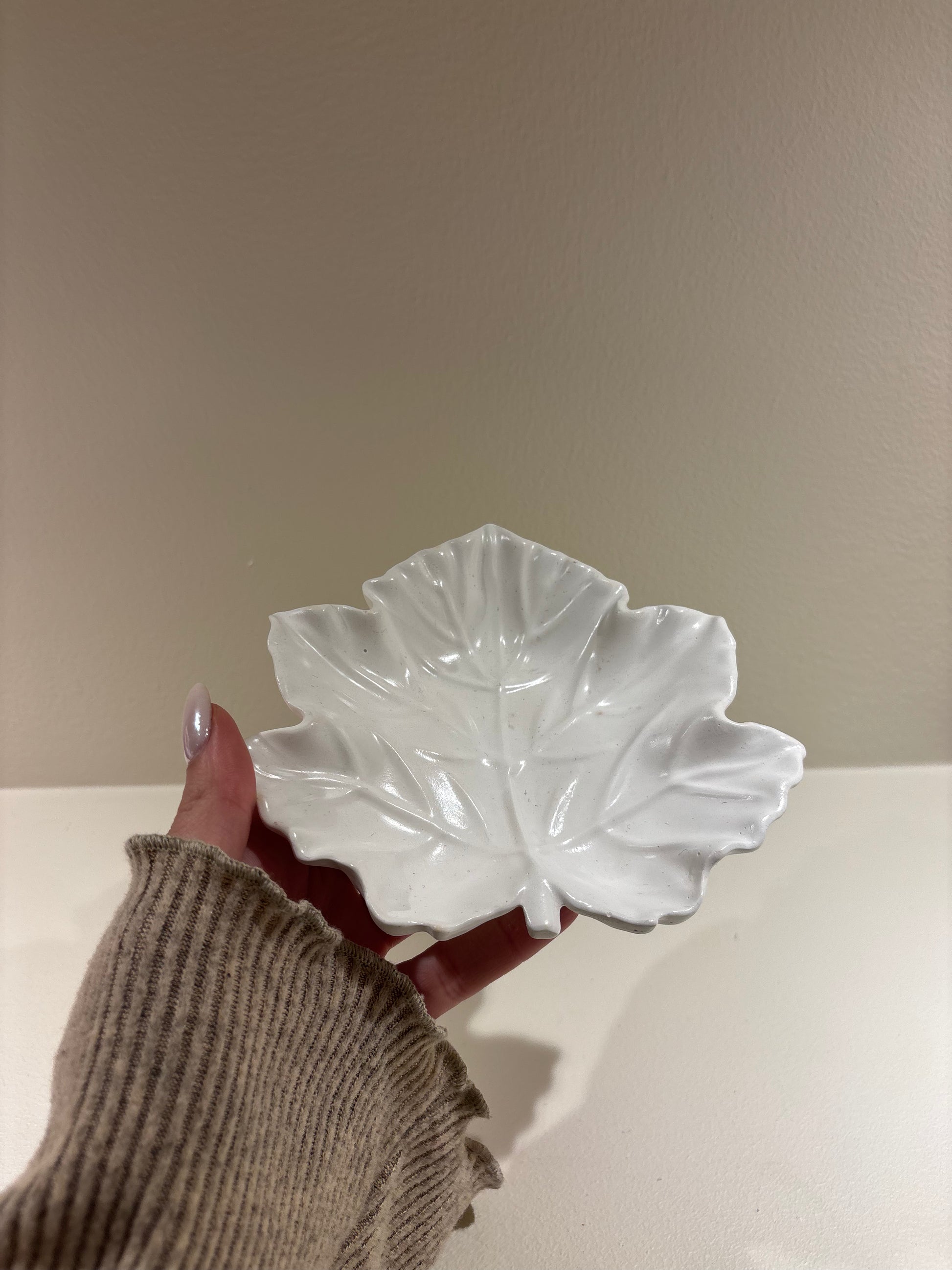 En blad liknande bricka, perfekt för smycken, snacks eller bara som en fin detalj hemma.