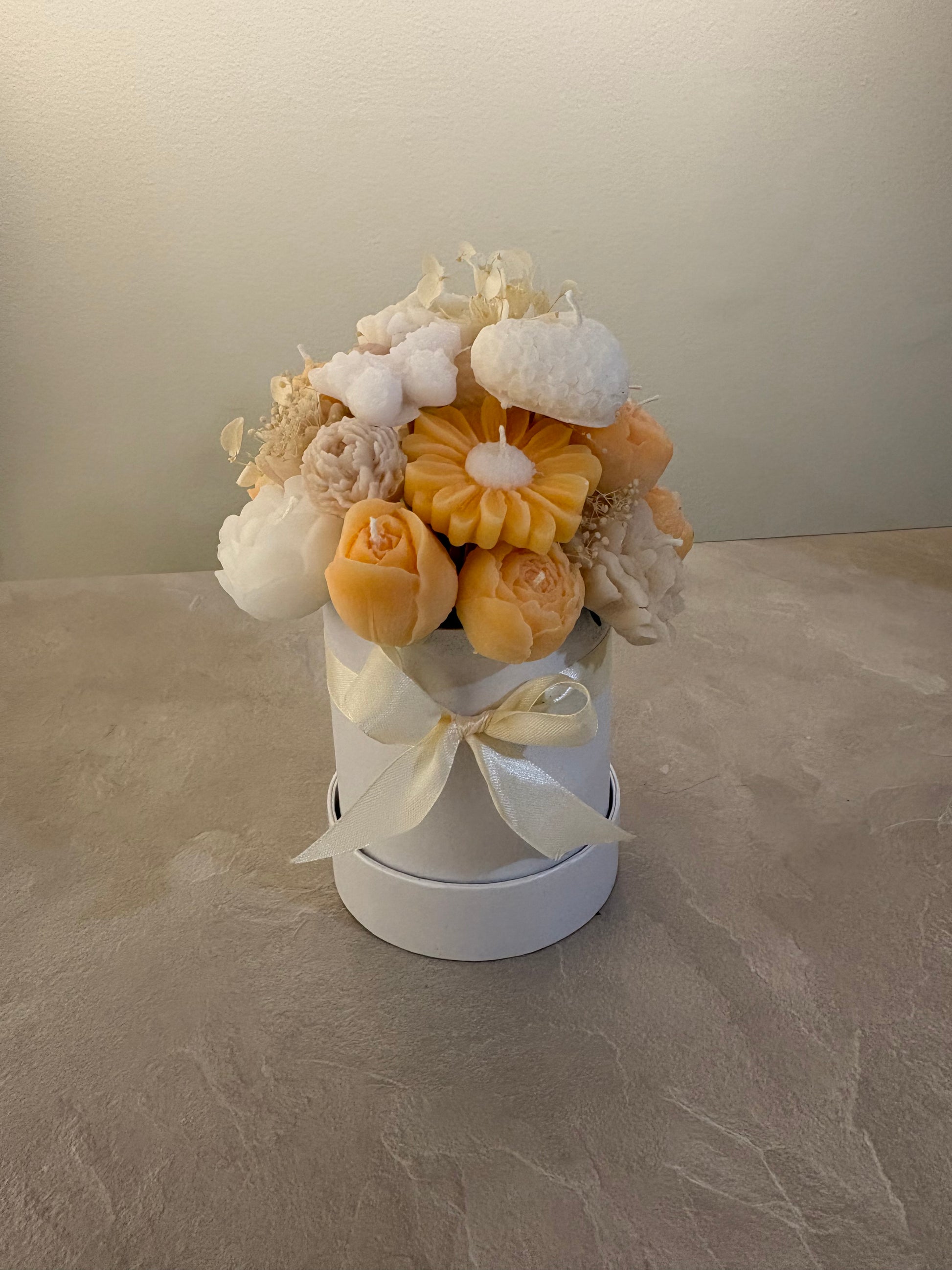 - Handgjord vaxbukett – en blomma som aldrig vissnar.”
