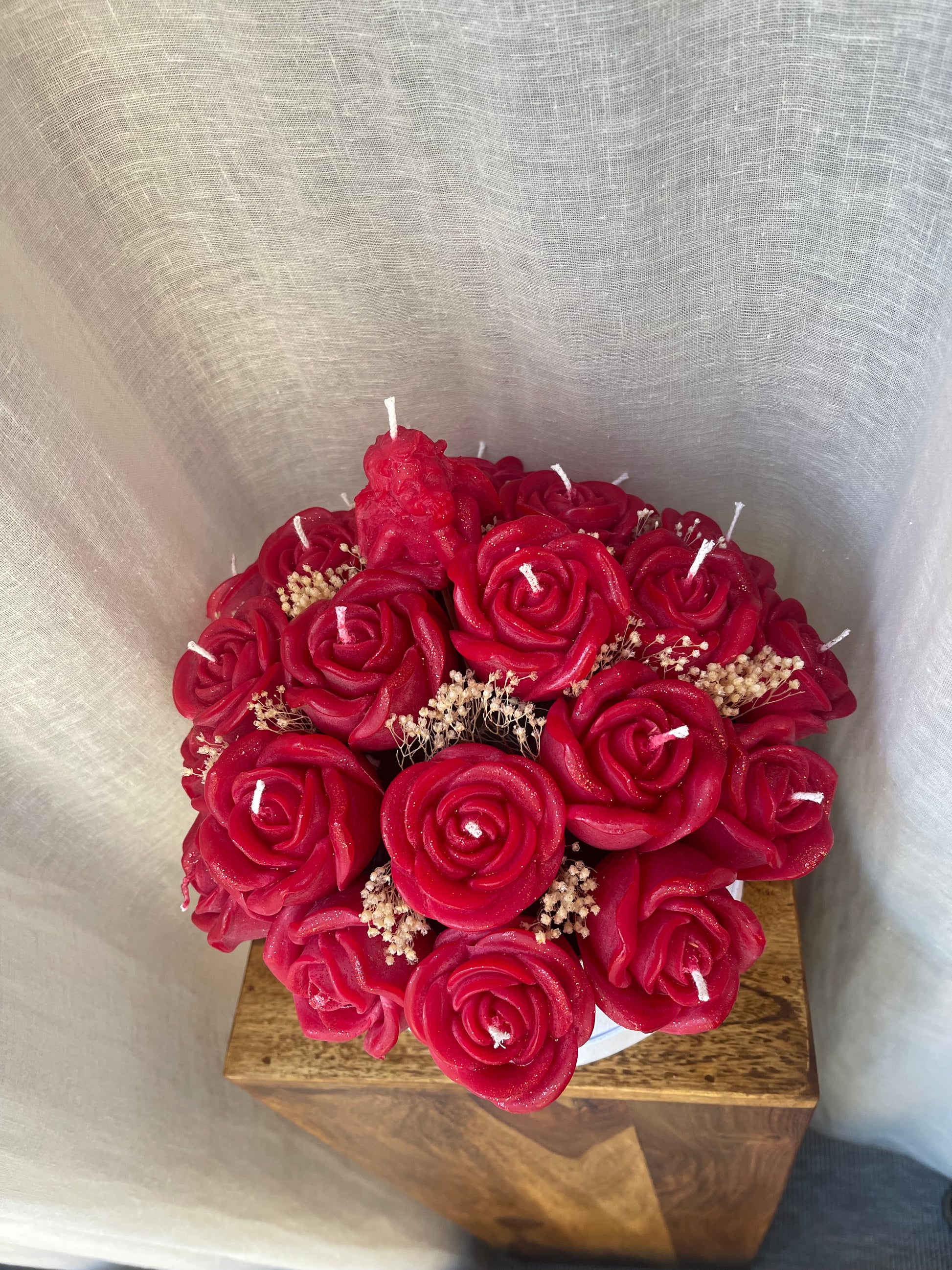 Frakt inom hela Sverige eller hämta på plats. Ljusbukett gjord av stearin- och sojavax.
