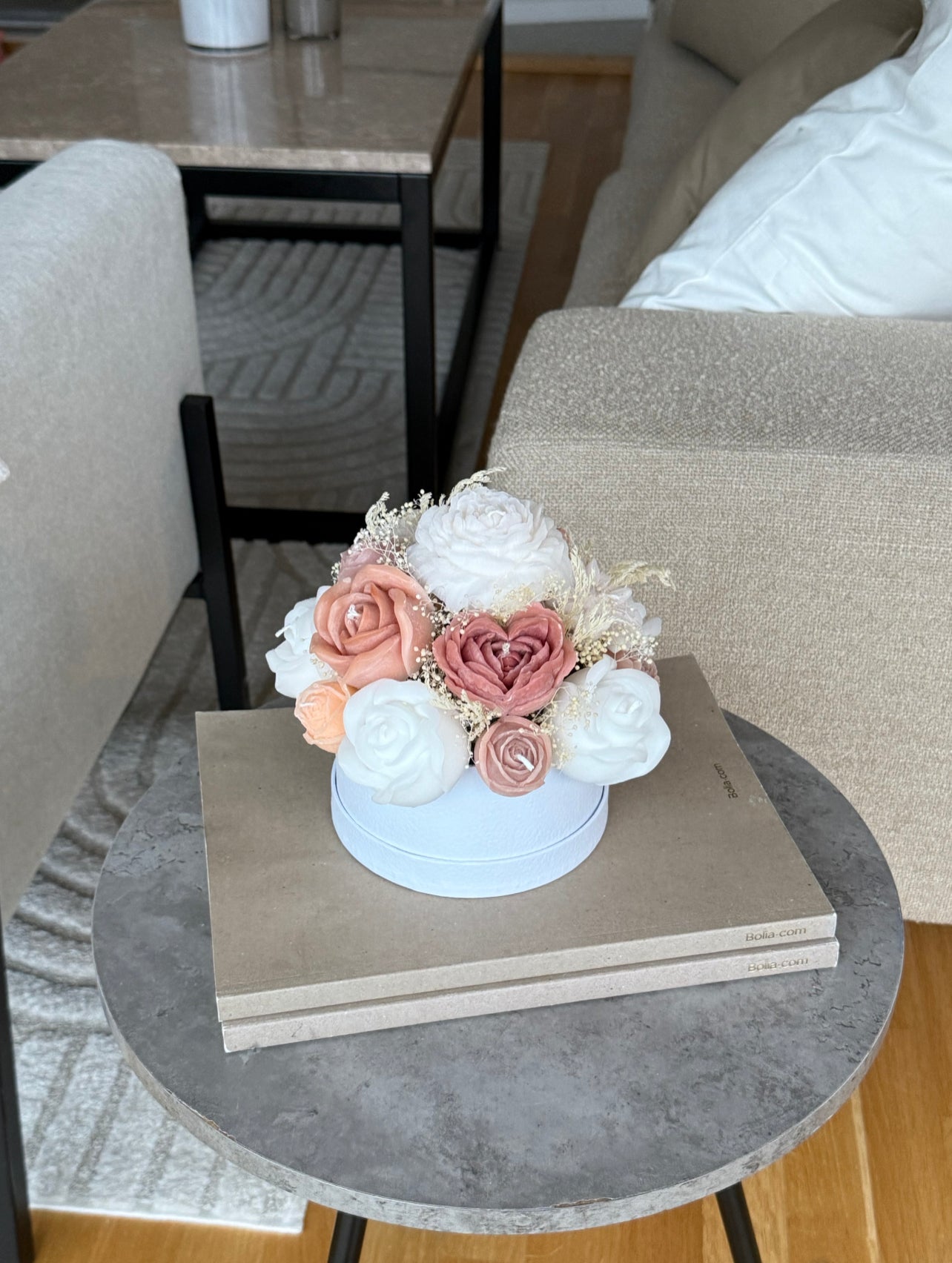 Ljusbukett gjord av stearin- och sojavax.