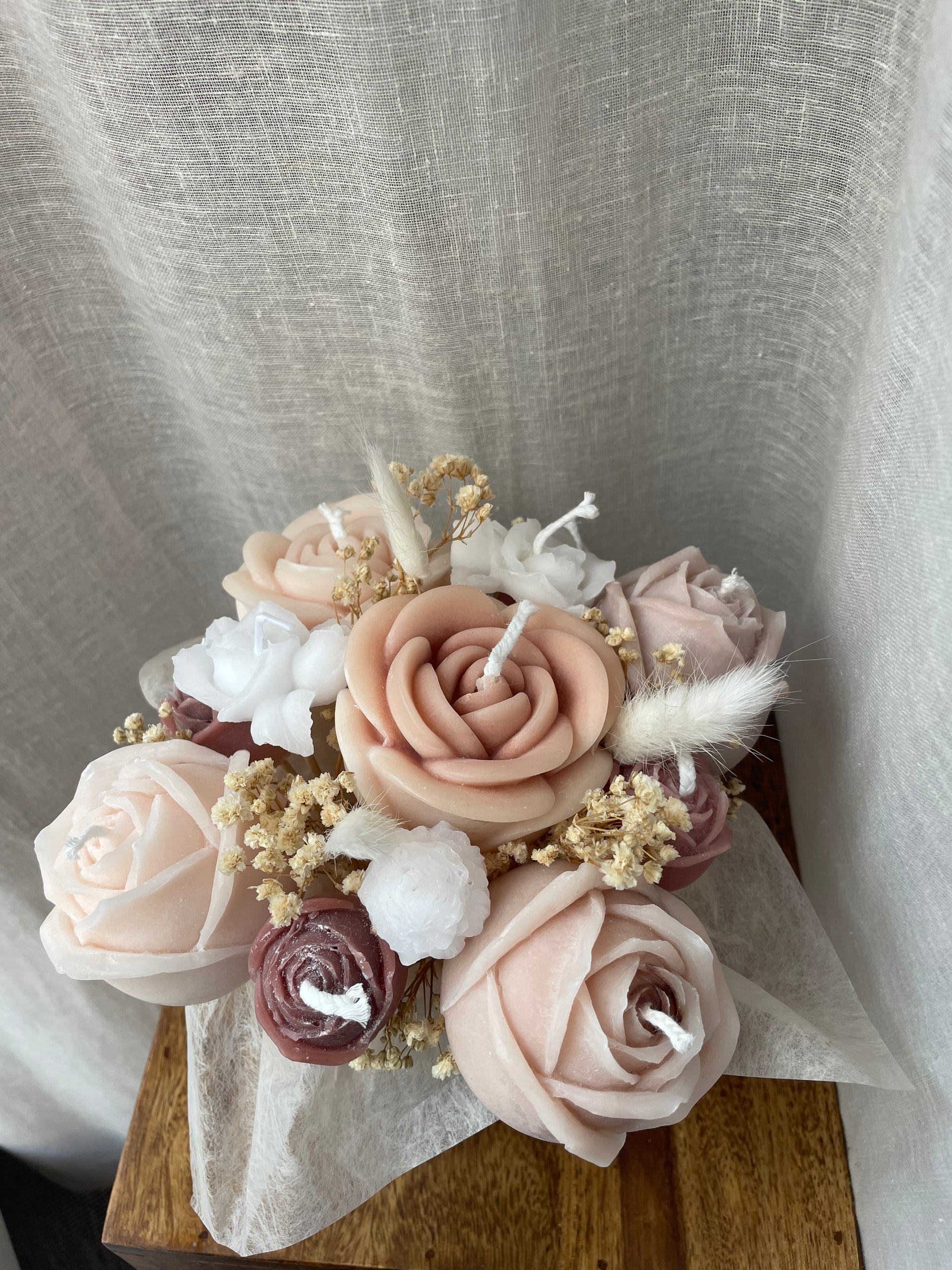 Ljusbukett gjord av stearin- och sojavax.