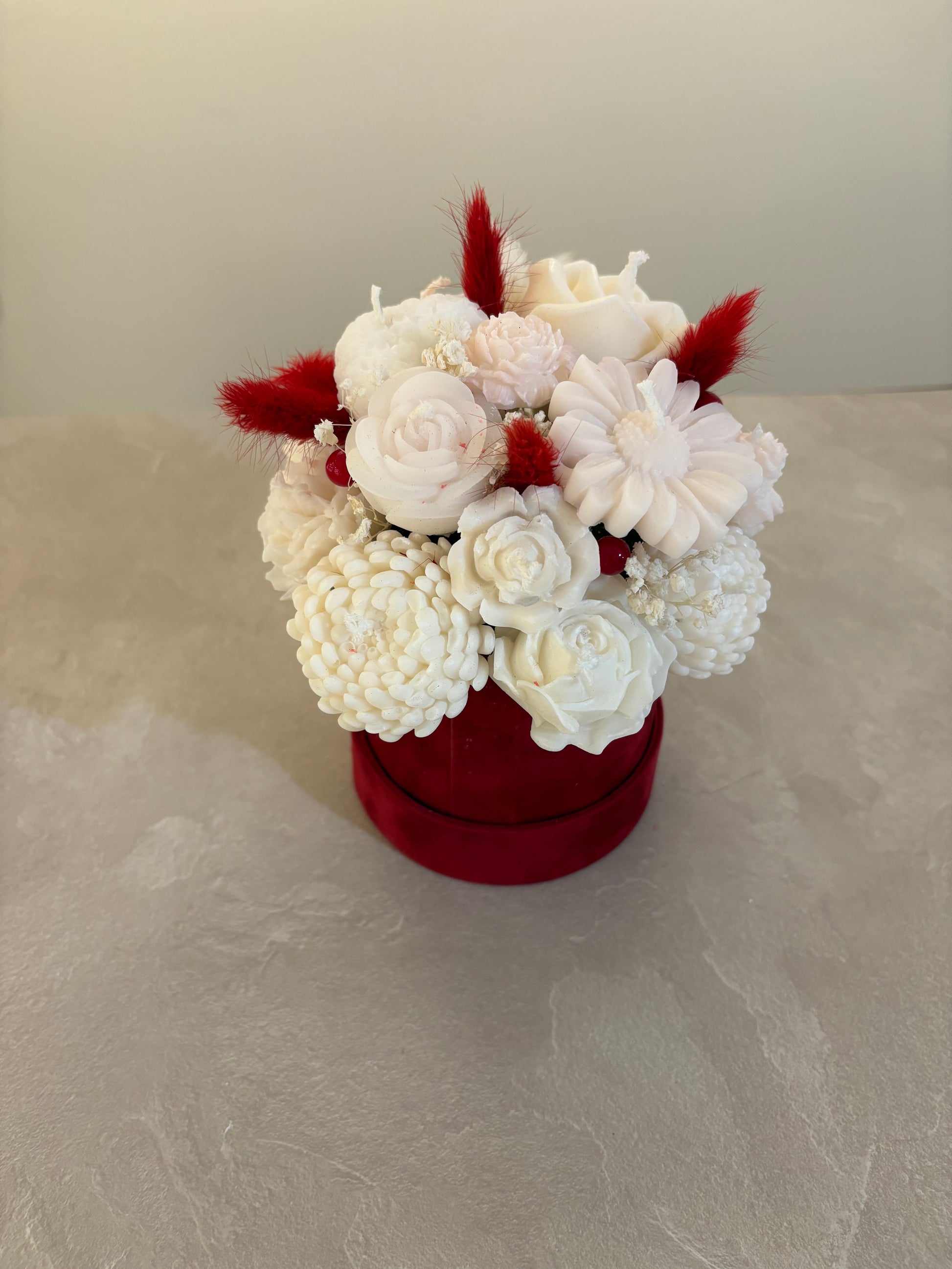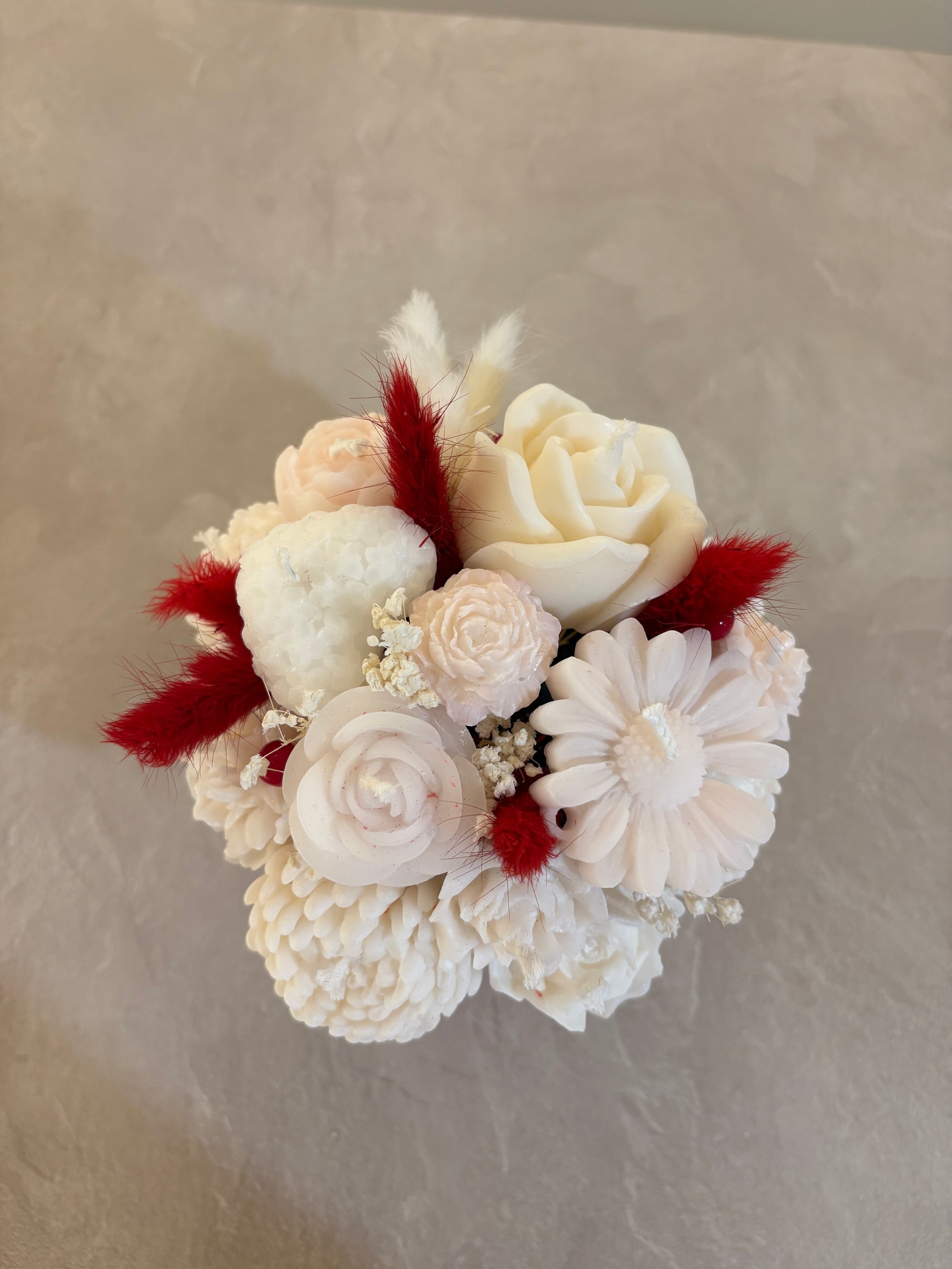 Liten söt bukett gjord i stearin och sojavax med torkade blommor