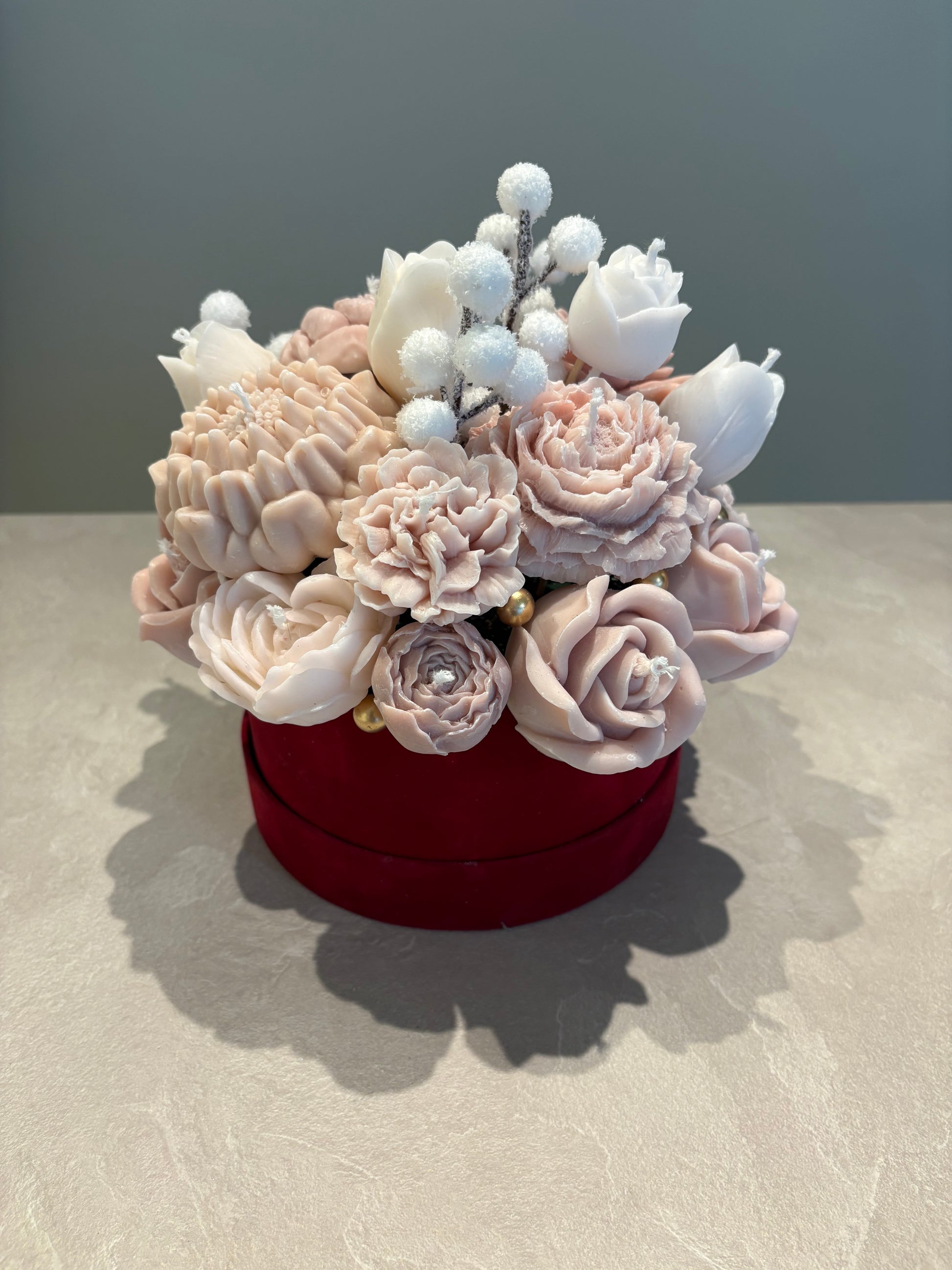 Bukett gjord av vax i lyxig velvet box perfekt som gåva eller till din vardagsrum