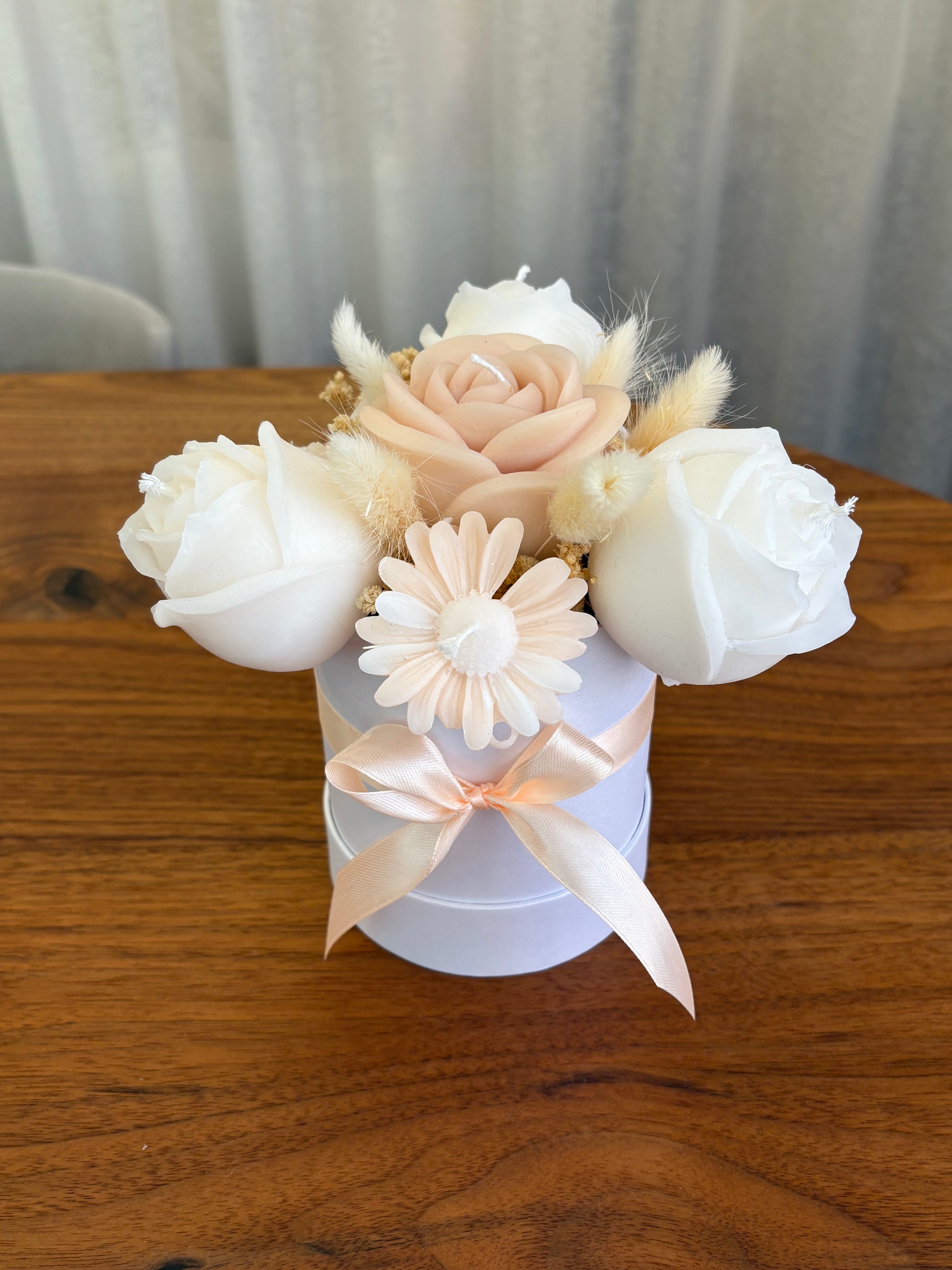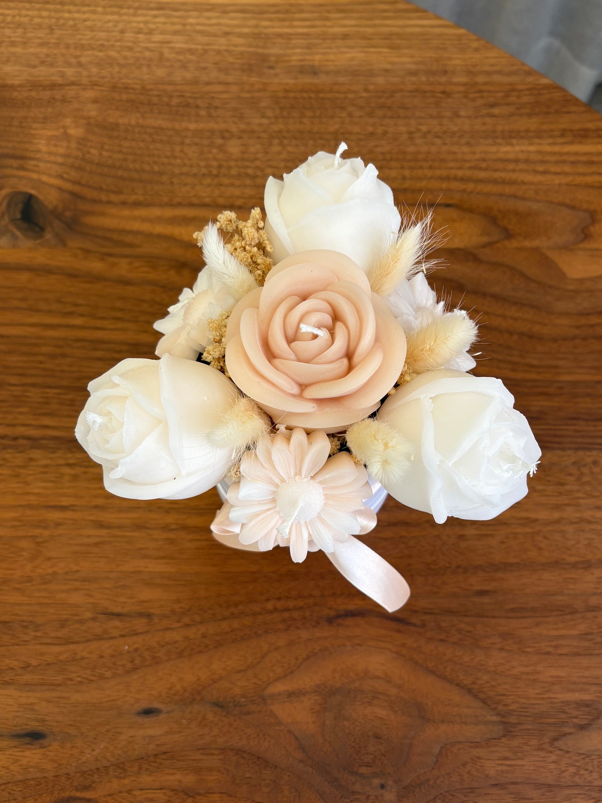 Frakt inom hela Sverige eller hämta på plats. Ljusbukett gjord av stearin- och sojavax.