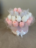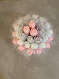 En handgjord bukett av vaxblommor i mjuka toner av puderrosa och vitt. En tidlös dekoration som aldrig vissnar – perfekt som gåva eller för att skapa en romantisk känsla i hemmet