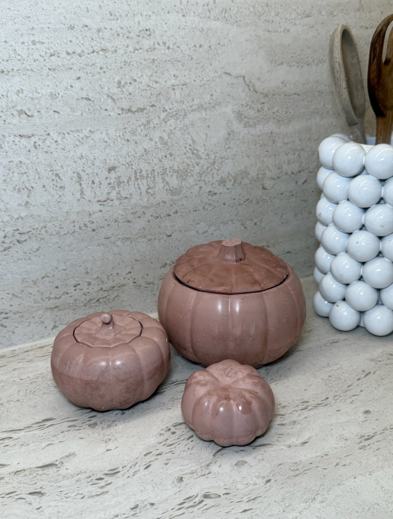 Pumpa set i rosa marmorering. Perfekt för att förvara småsaker, använda som smyckesskål eller låta stå framme som en vacker detalj i hemmet.
