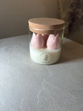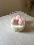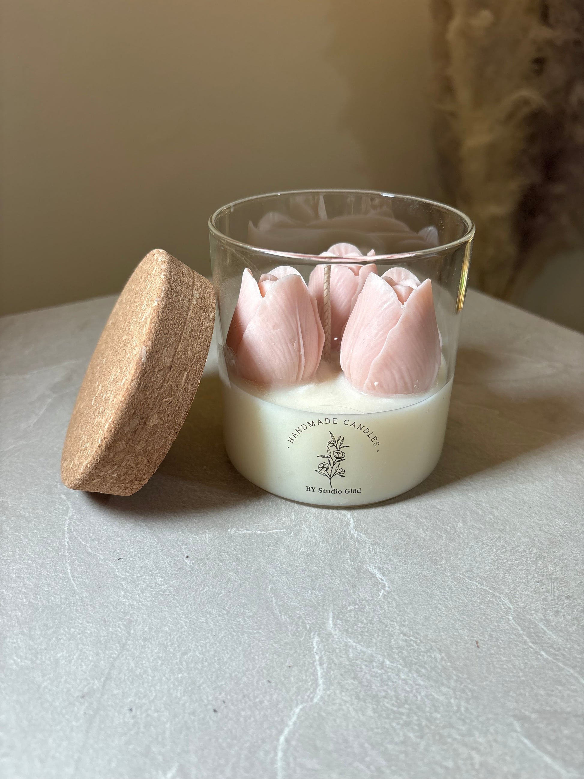 Skapa en varm, romantisk atmosfär med detta unika och handgjorda ljus. dekorerat med tulpan