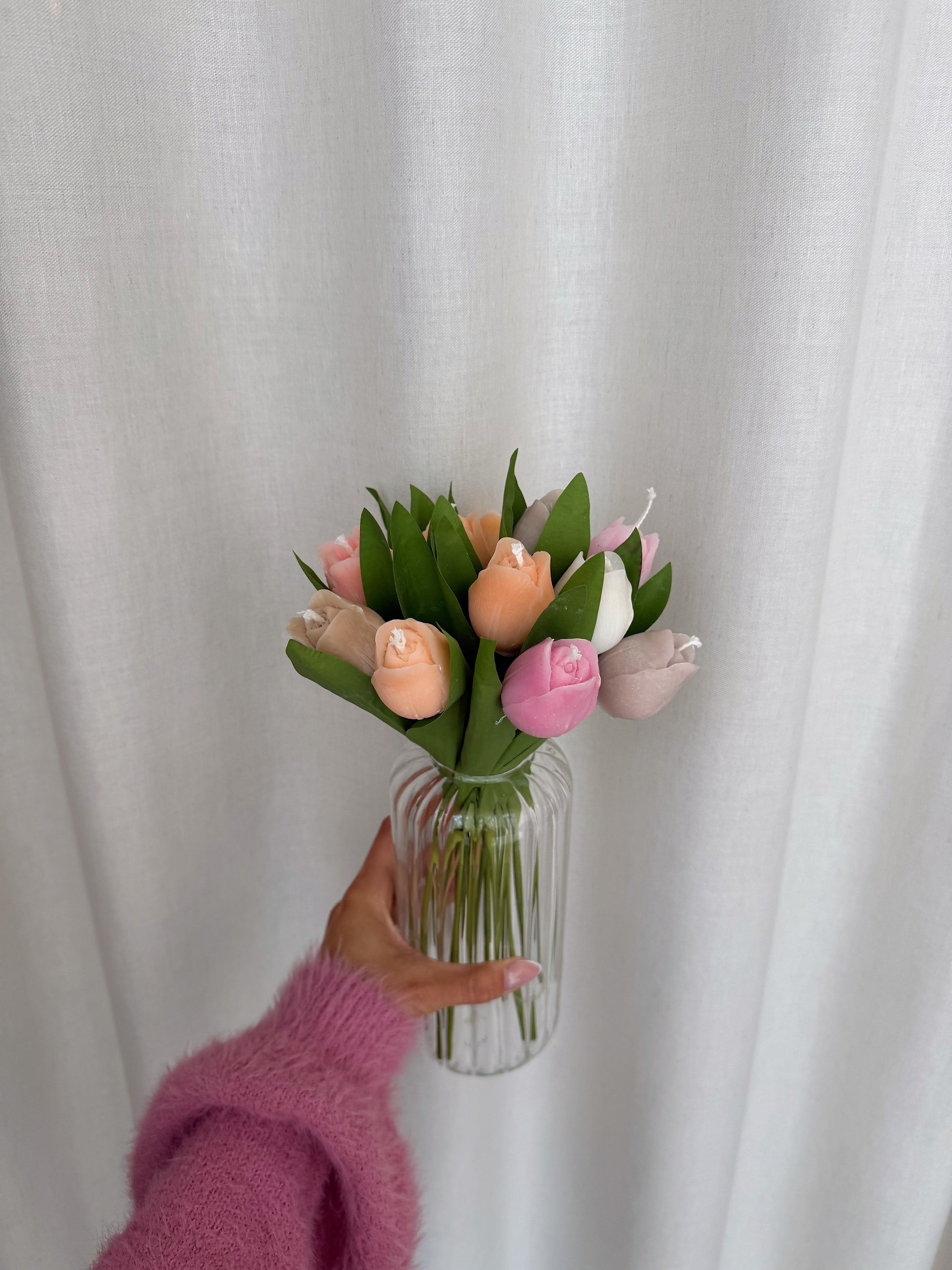 Frakt inom hela Sverige eller hämta på plats. Tulpan ljusbukett gjord av stearin- och sojavax. 10st