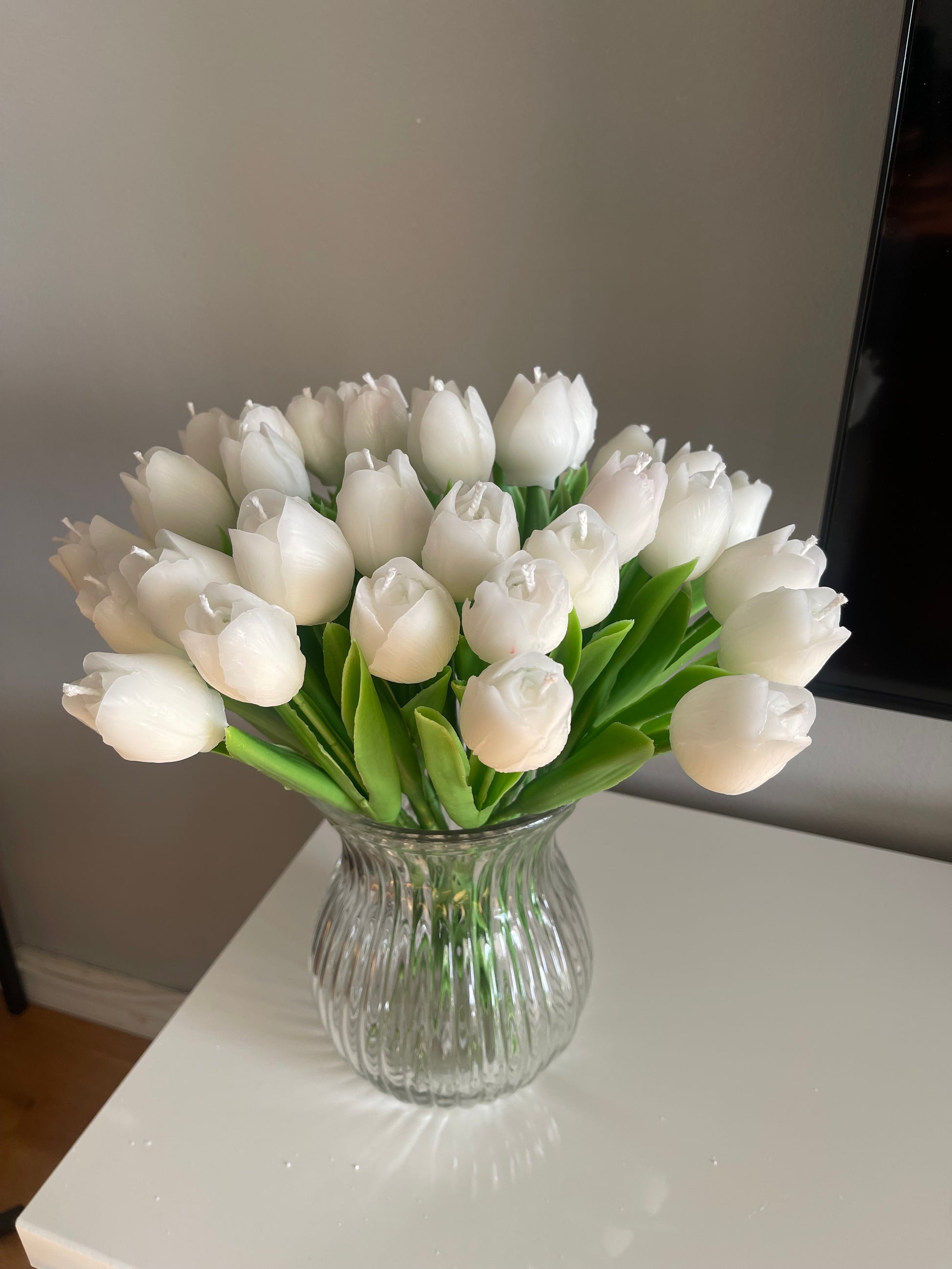 Frakt inom hela Sverige eller hämta på plats. Tulpan ljusbukett gjord av stearin- och sojavax. 30st