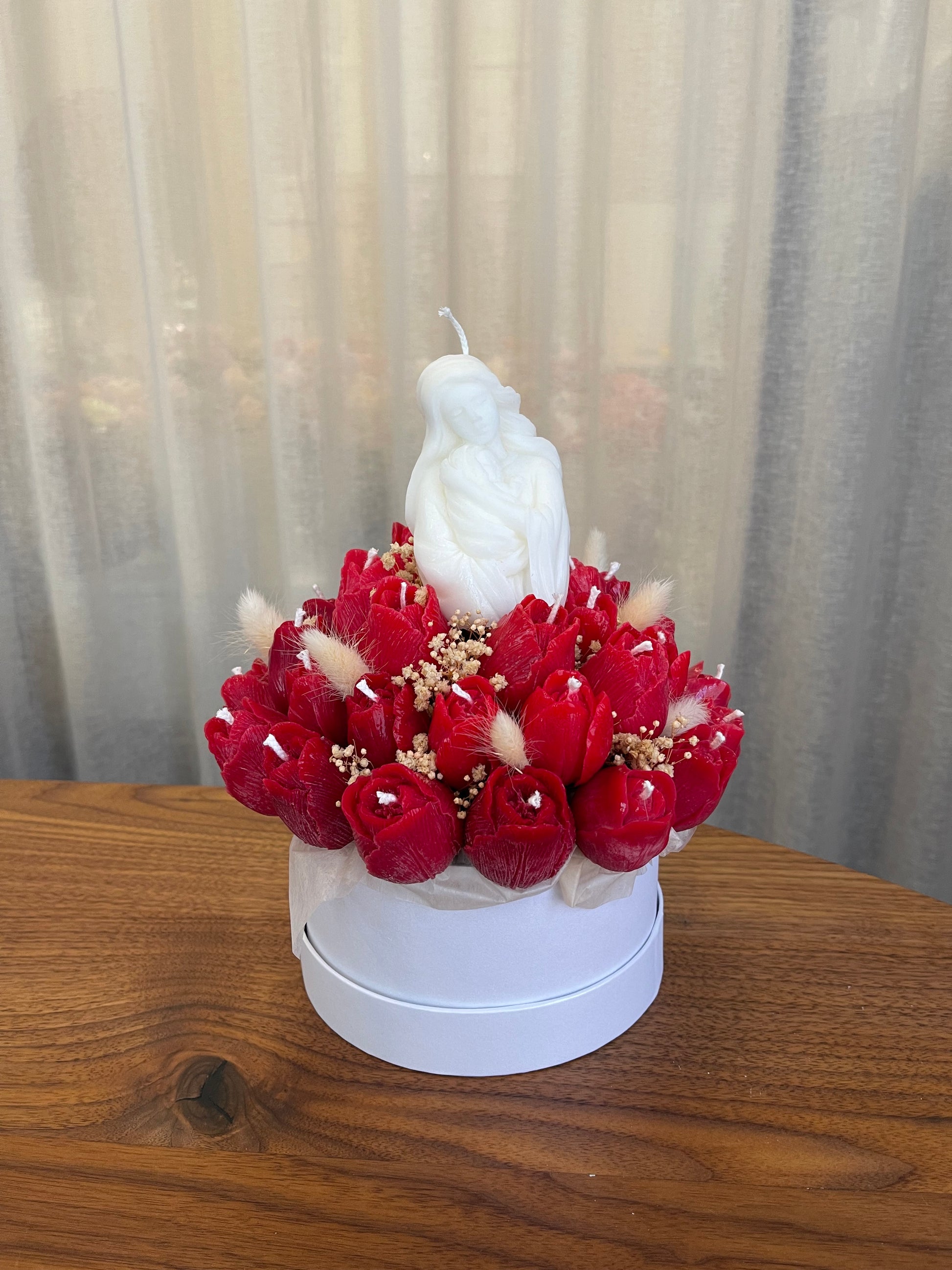 Frakt inom hela Sverige eller hämta på plats. Ljusbukett gjord av stearin- och sojavax.