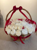 Den perfekta Alla hjĂ€rtans dag-presenten đ KrĂ€mvita rosor i vax med ett rött hjĂ€rta â handgjord och tidlöst romantisk.