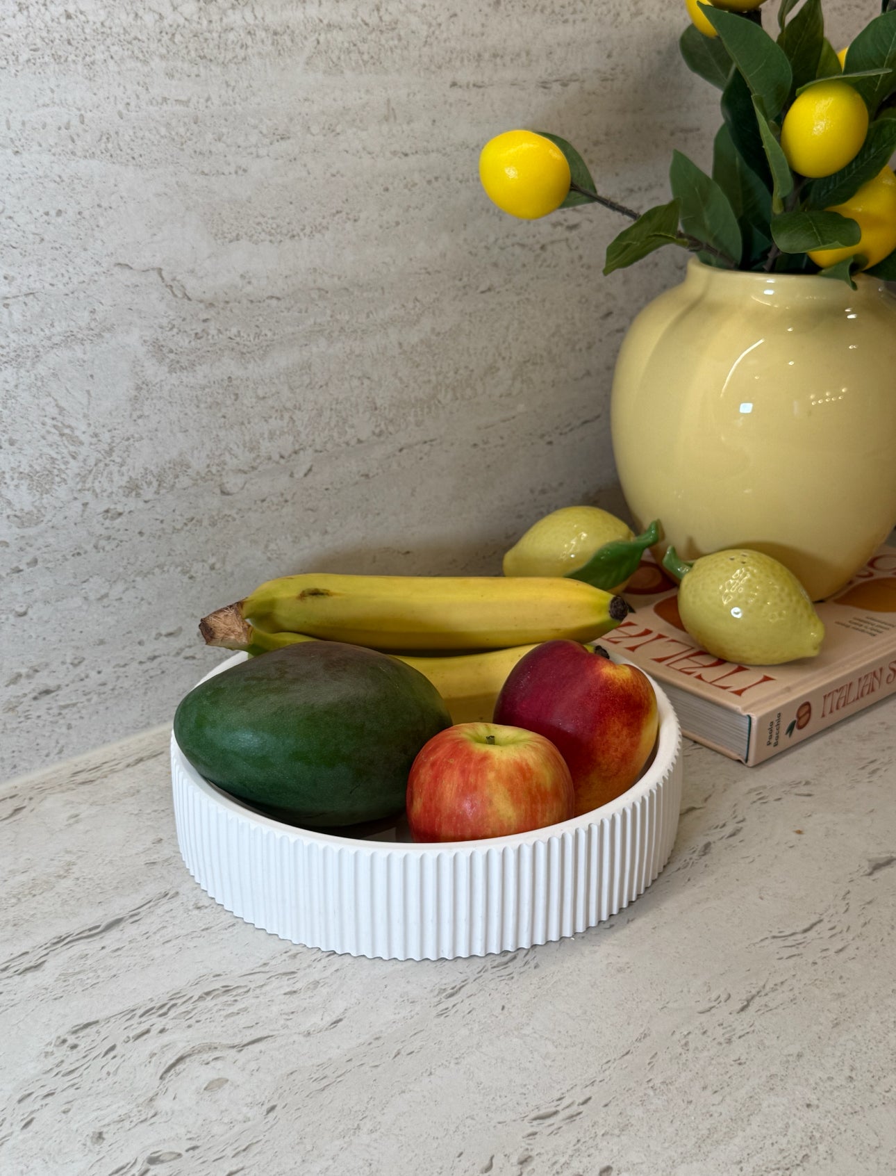 Frakt inom hela Sverige eller upphämtning på plats Vit randig skål , perfekt som fruktskål eller som fin inredningsdetalj